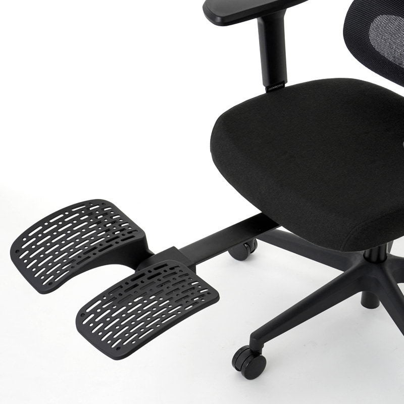 清潔感ある樹脂製フットレスト座面下に収納する省スペースタイプのフットレスト付き。デスクワークの休憩時にロッキング機能と合わせてお使い頂けます。材質は清潔感ある樹脂製です。