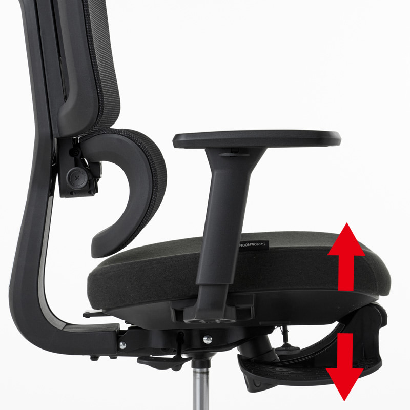 座面上下昇降右側のレバーで座面を昇降させます。上下約7cmの可動域で、座面の高さを調整できます。