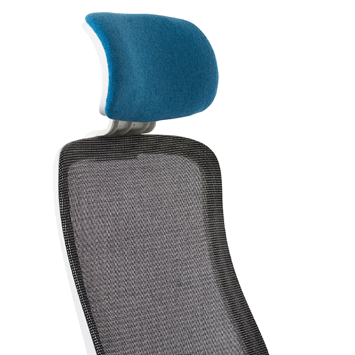 ヘッドレスト上下昇降座面と同じファブリック生地を使用した大型ヘッドレスト(幅約32cm)は6段階高さ調整が可能です。