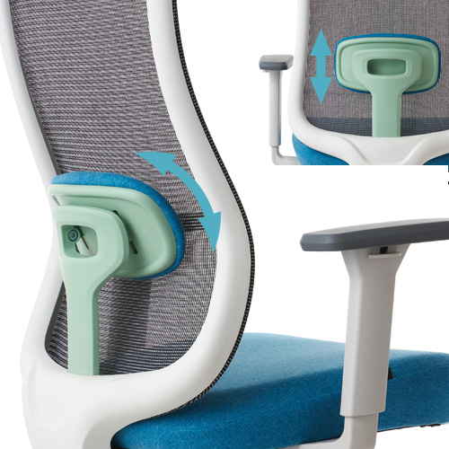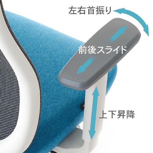 3Dアーム、シンクロロッキング機能、可動式ランバーサポートなど機能も充実。