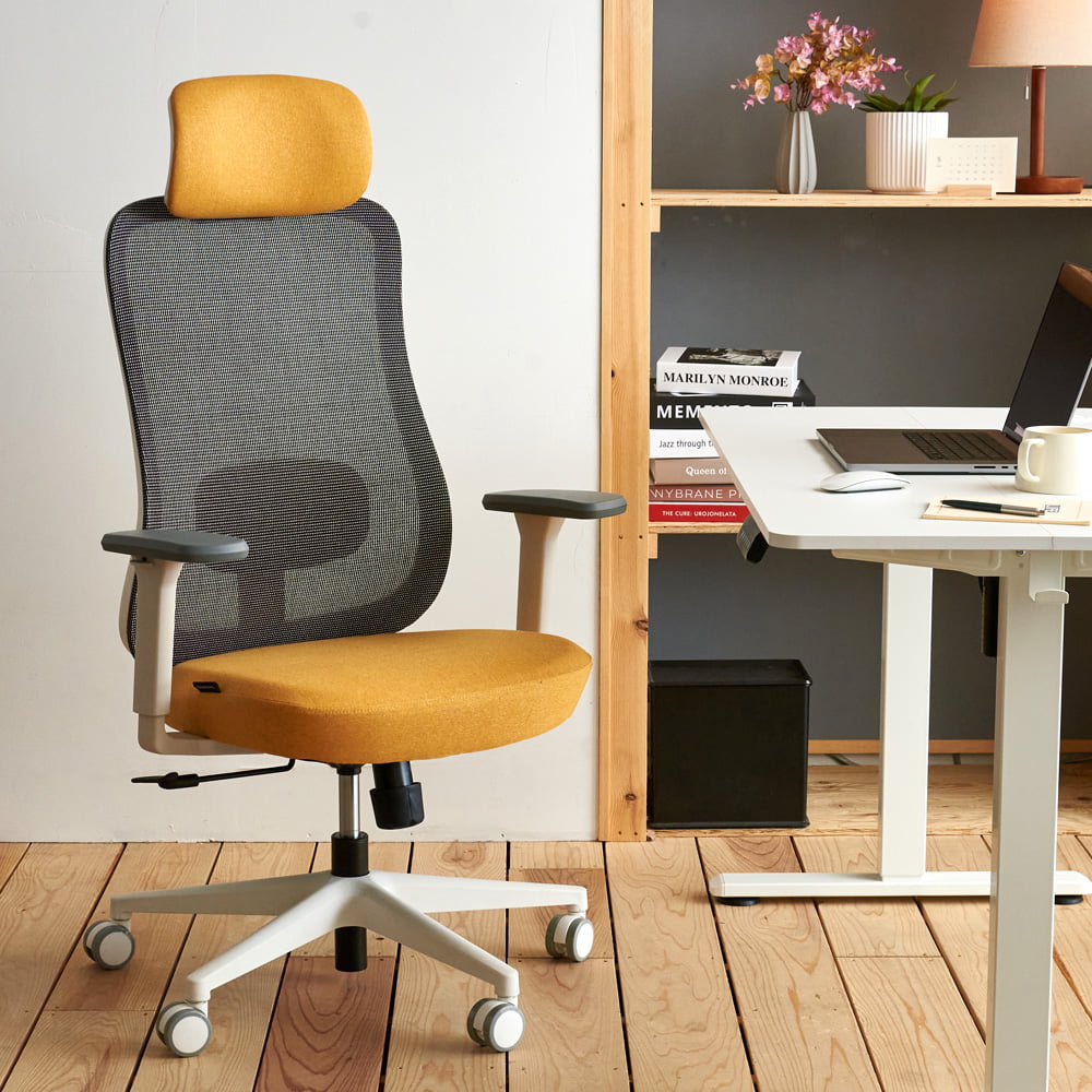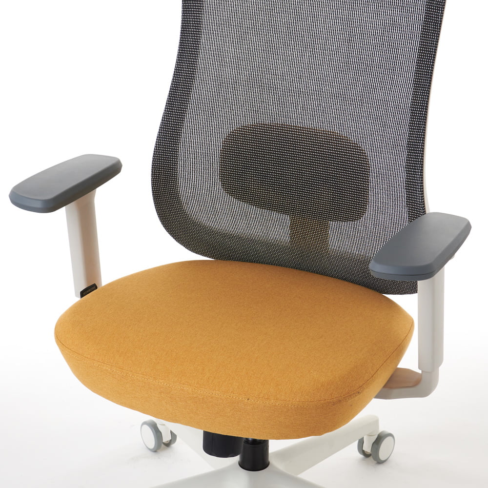 商品づくりをコンセプトに、+1(プラスワン)のエッセンスで「毎日の働く」を応援する「Work-Furniture」ブランド。 ワークチェア M2シリーズ(ホワイトフレーム)シンクロロッキング、可動式ランバーサポート、3Dアームなど座るを快適にする機能。小柄なユーザーもしっかり座れる低座面。丸みのある優しいデザインに彩り豊かなファブリックを組み合わせた彩り豊かな北欧モダンスタイルのスタイリッシュワークチェアです。  |