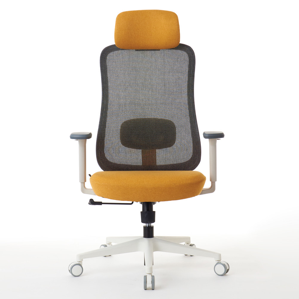 シンプルな丸みのある優しいデザインに彩り豊かなカラーファブリックを組み合わせた北欧モダンスタイルのワークチェア。