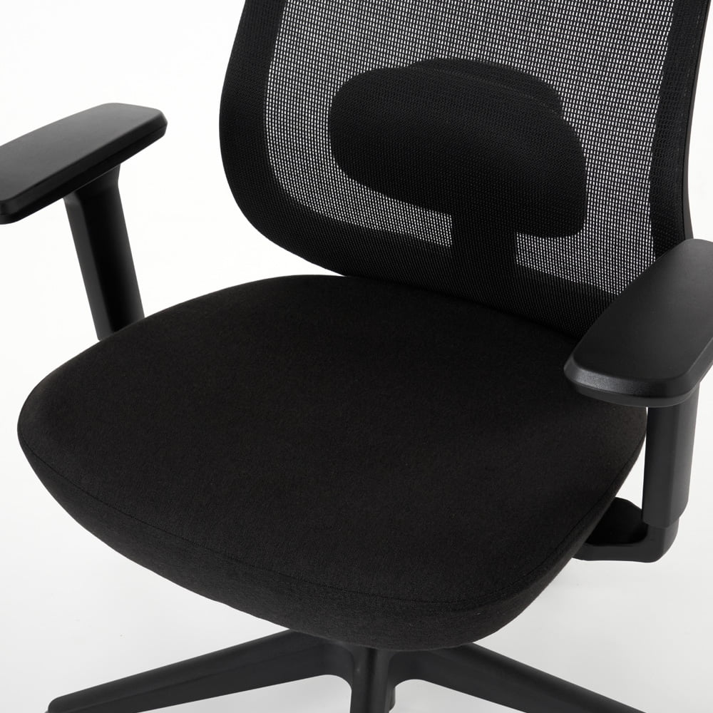 商品づくりをコンセプトに、+1(プラスワン)のエッセンスで「毎日の働く」を応援する「Work-Furniture」ブランド。 ワークチェア M2シリーズ(ブラック)シンクロロッキング、可動式ランバーサポート、3Dアームなど座るを快適にする機能。小柄なユーザーもしっかり座れる低座面。丸みのある優しいデザインに彩り豊かなファブリックを組み合わせた彩り豊かな北欧モダンスタイルのスタイリッシュワークチェアです。  |