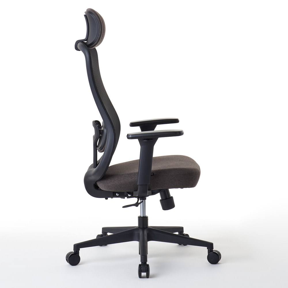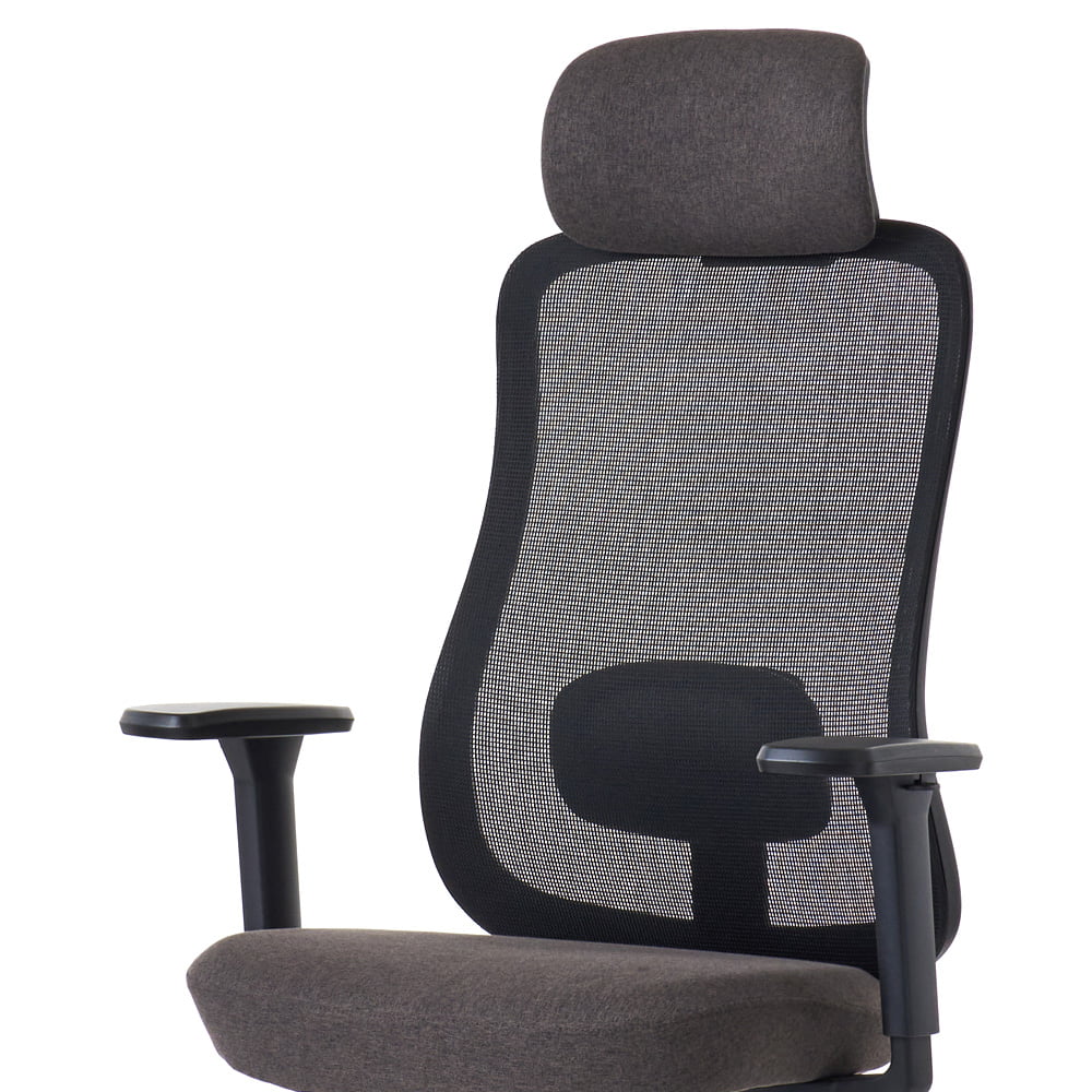 ヘッドレスト上下昇降座面と同じファブリック生地を使用した大型ヘッドレスト(幅約32cm)は6段階高さ調整が可能です。