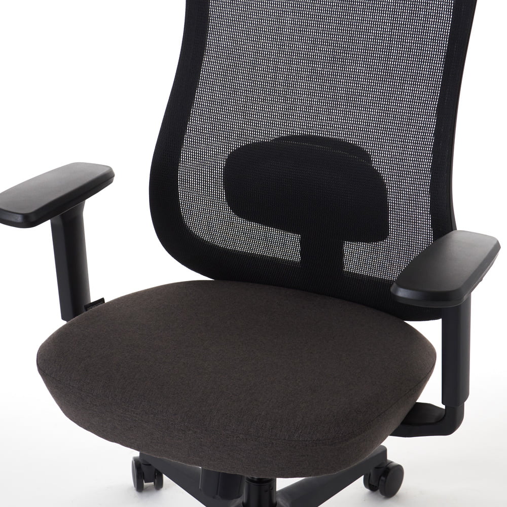商品づくりをコンセプトに、+1(プラスワン)のエッセンスで「毎日の働く」を応援する「Work-Furniture」ブランド。 ワークチェア M2シリーズ(ブラック)シンクロロッキング、可動式ランバーサポート、3Dアームなど座るを快適にする機能。小柄なユーザーもしっかり座れる低座面。丸みのある優しいデザインに彩り豊かなファブリックを組み合わせた彩り豊かな北欧モダンスタイルのスタイリッシュワークチェアです。  |