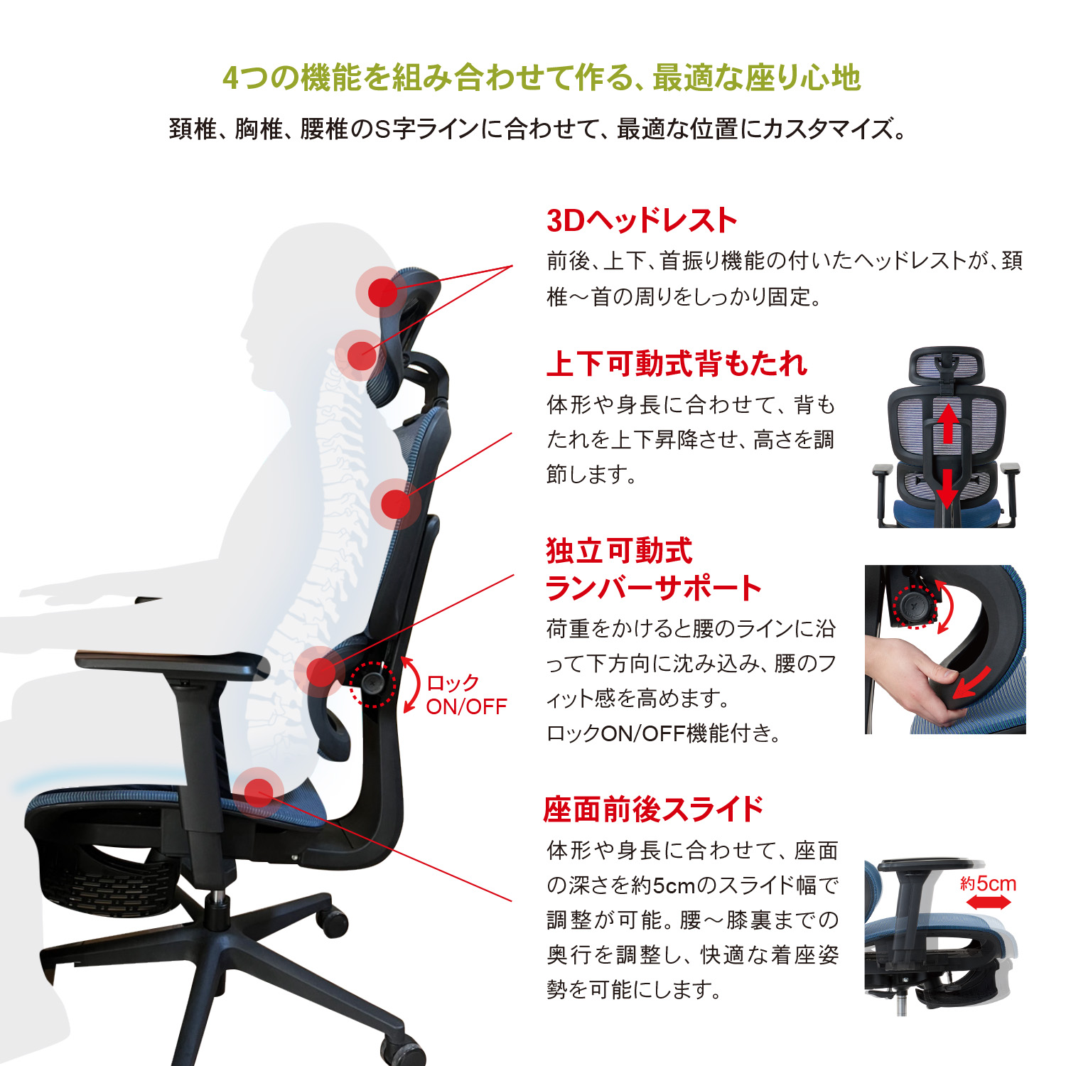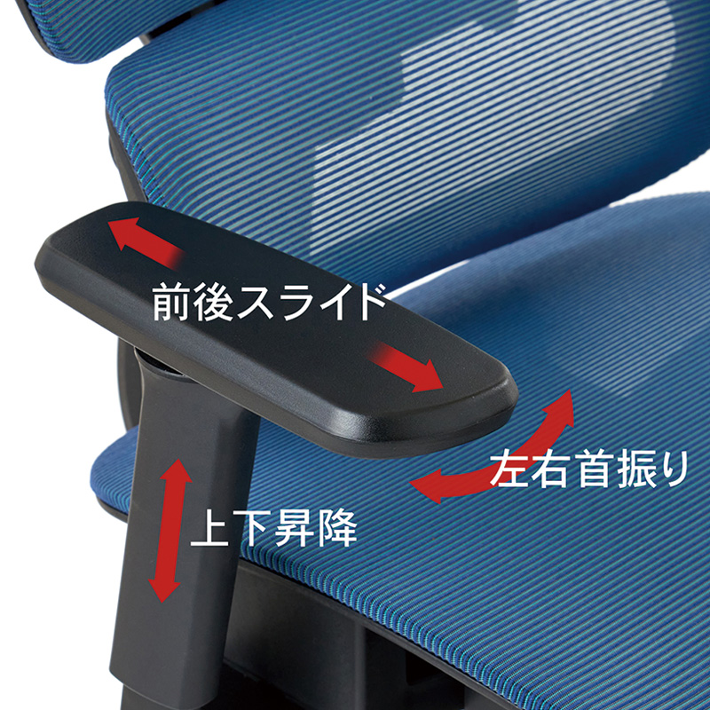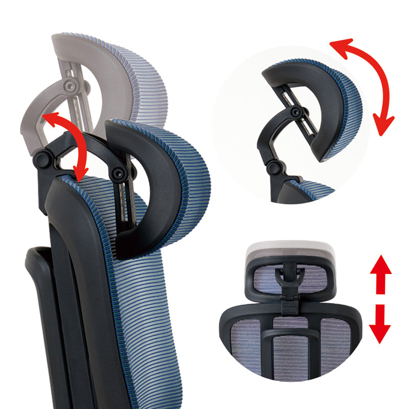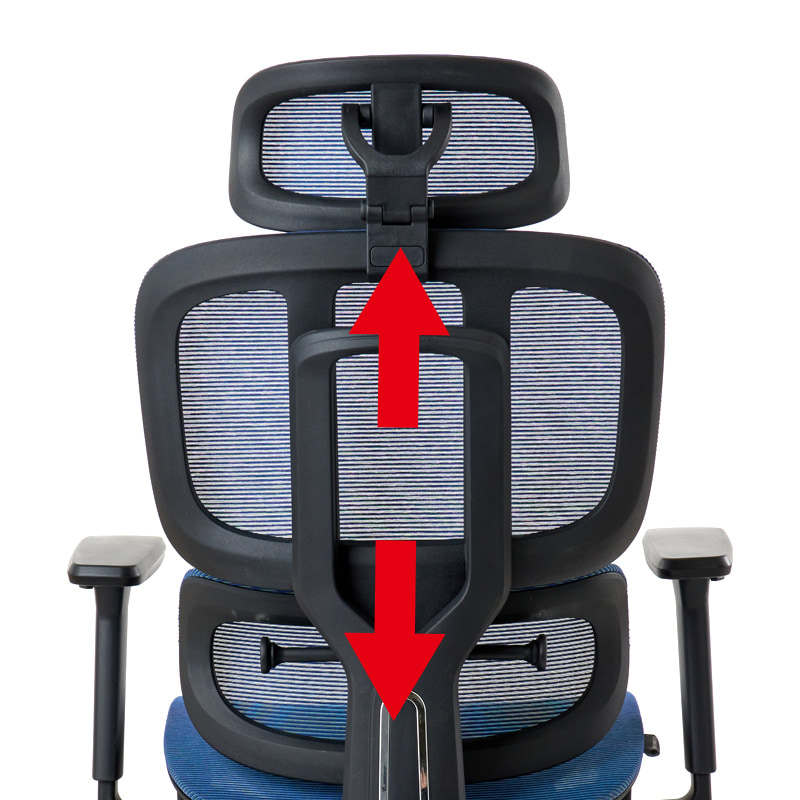 背もたれ上下昇降背もたれを上下に調節ができる機能です。背中や腰のあたり位置を、昇降幅約6cmの範囲で調整できます。