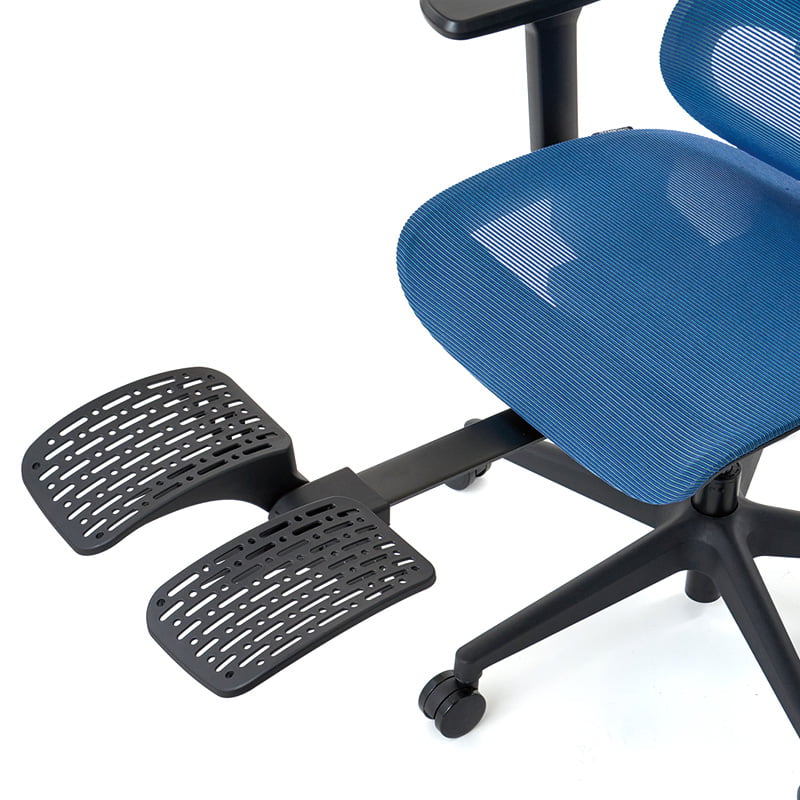 清潔感ある樹脂製フットレスト座面下に収納する省スペースタイプのフットレスト付き。デスクワークの休憩時にロッキング機能と合わせてお使い頂けます。材質は清潔感ある樹脂製です。